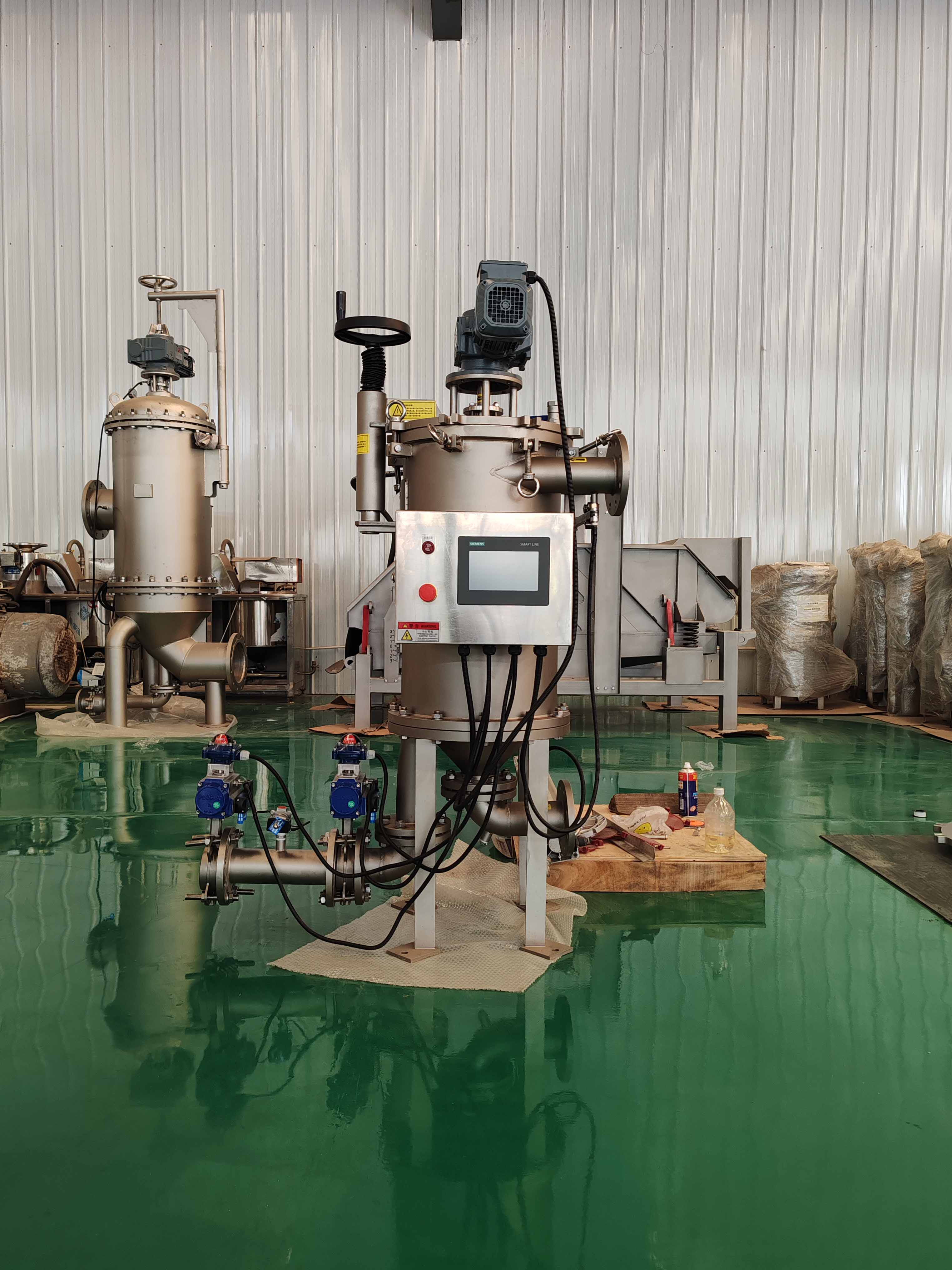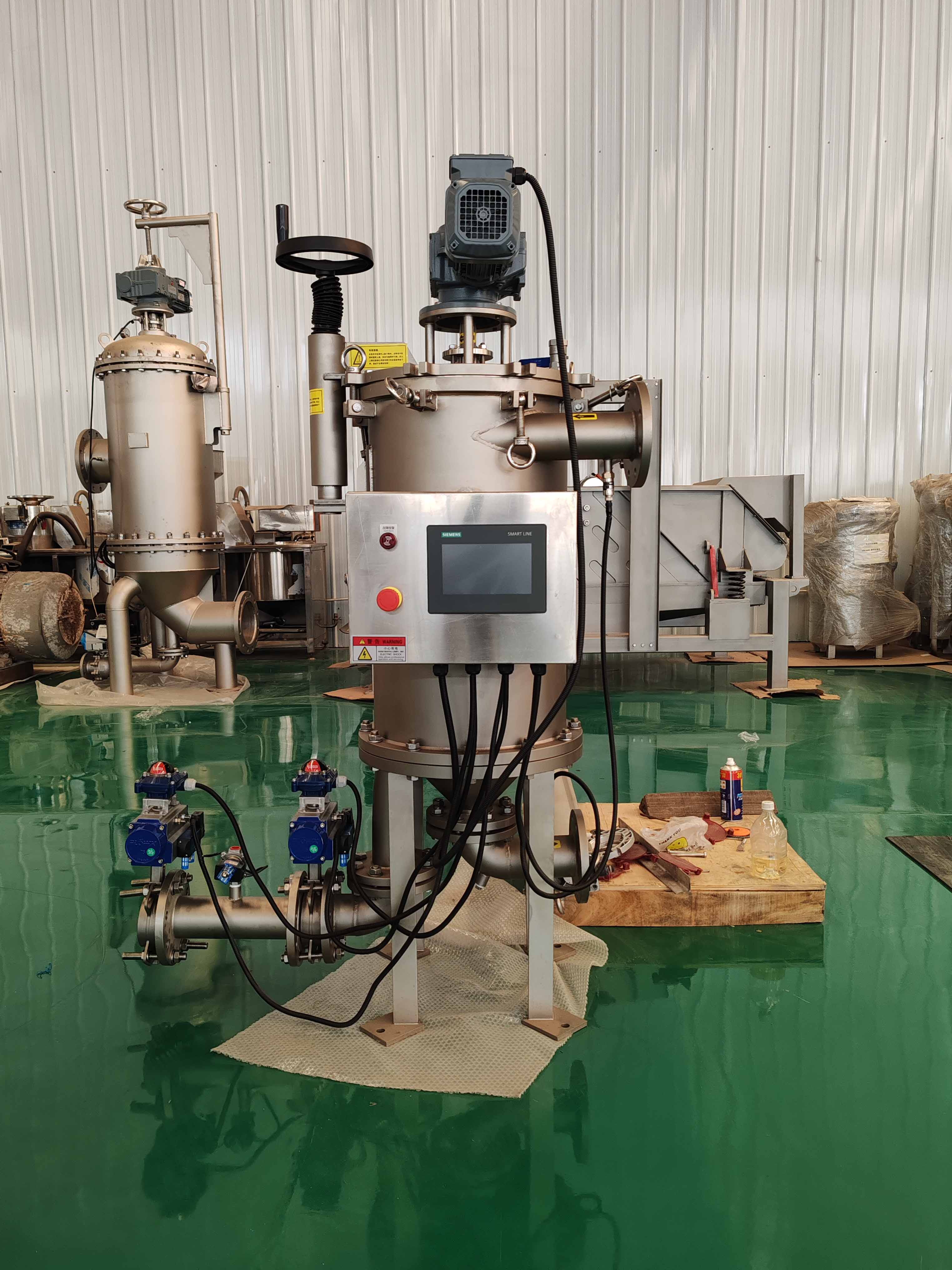 In customer‘s process water there are remains of phenolic resin, glass fibers, mud, etc.. Customer tried several different self-cleaning